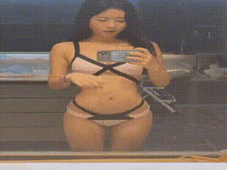 은유화 비키니 입고 거울 앞에서