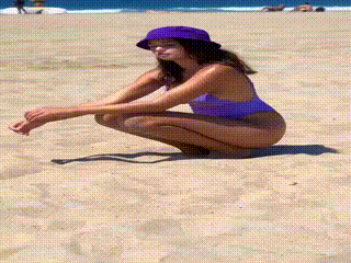 보라색 원피스 수영복 입은 서양 누나
