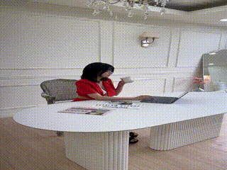 계단에서 당당하게 내려오는 서양 누나